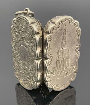 5 A Chinese export silver vinaigrette, circa 1900, relief moulded and cast with a populated garden scene £400 - £600