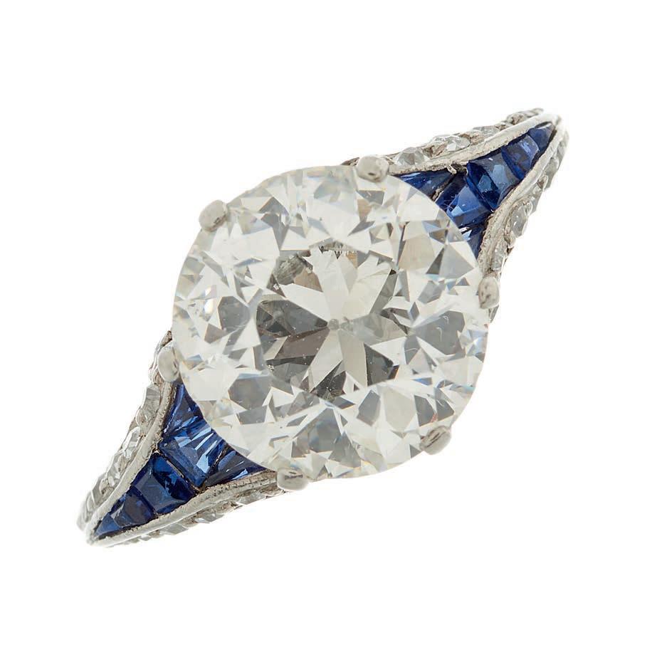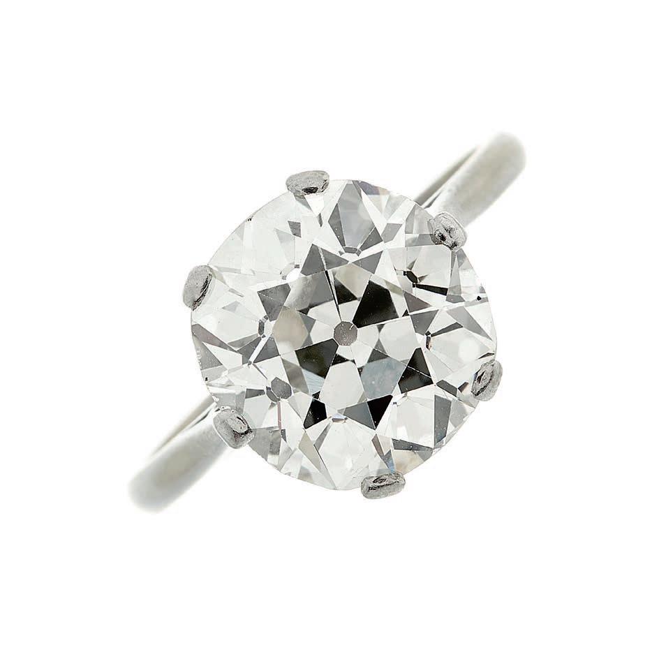 An early 20th century platinum old-cut diamond single-stone ring, with verbal report from GCS, stating diamond estimated weight 4ct, J-K colour, VS2-SI1 clarity, band stamped PLAT, ring size L1/2, 3.9g
