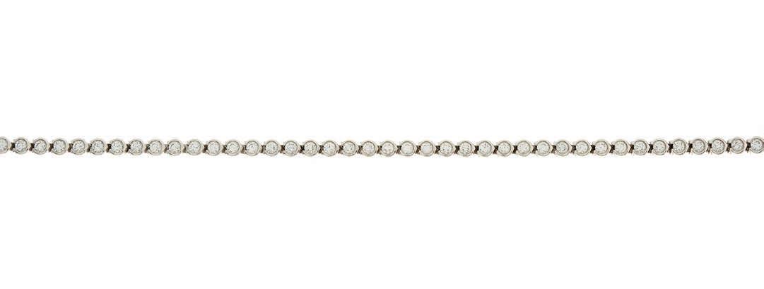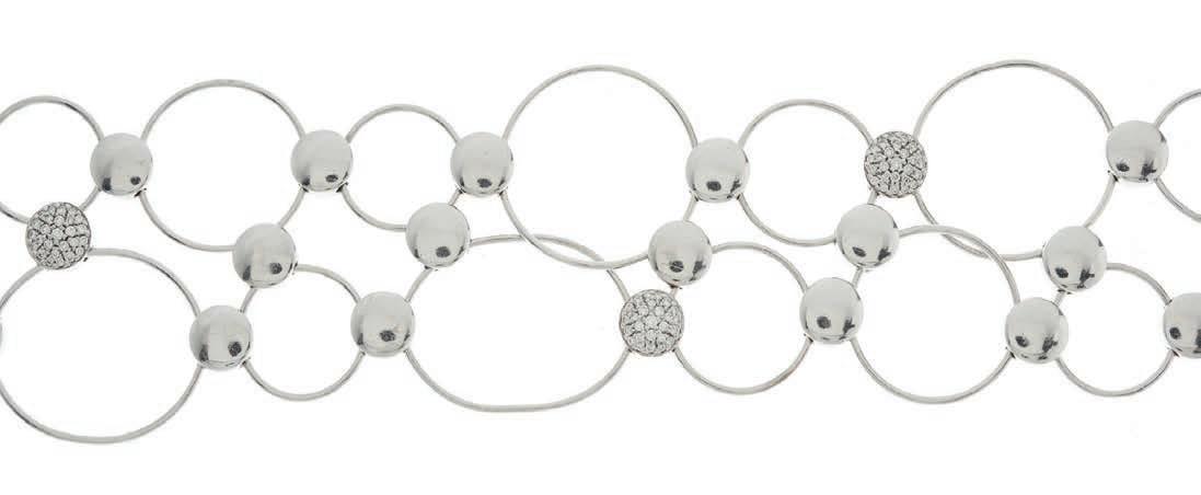 32. An 18ct gold openwork bracelet, designed as a series of circular or oval-shape links, with polished or pave-set diamond disc spacers, with concealed folding double clasp, estimated total diamond weight 0.60ct, mount stamped 750, length 19.5cm, 43.4g £1,500 - £2,000