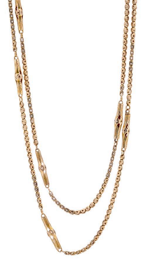3 A late Victorian gold, fancy-link longuard chain necklace, with push-piece barrel clasp, length 155cm, 25g £400 - £600