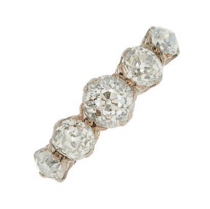 7 An early 20th century graduated old-cut diamond fivestone ring, with slightly tapered shoulders, estimated total diamond weight 2ct, H-I colour, SI clarity, ring size N, 2.3g £400 - £600