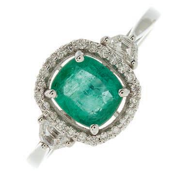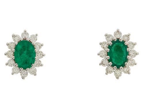 43 A pair of 18ct gold emerald and brilliant-cut diamond cluster stud earrings, estimated total emerald weight 1.50ct, estimated total diamond weight 0.70ct, I-J colour, SI clarity, mount stamped 18K, length 1.2cm, 3.6g £1,000 - £1,500