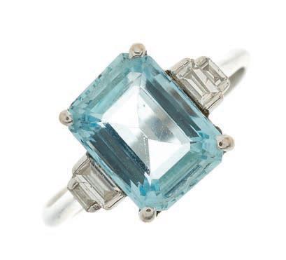 29. An 18ct gold aquamarine and diamond dress ring, aquamarine estimated weight 2.30ct, estimated total diamond weight 0.20ct, band stamped 750, ring size N, 3g £200 - £300