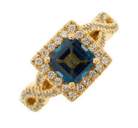 37 An 18ct gold blue topaz and brilliant-cut diamond cluster dress ring, with similarly-cut diamond woven shoulders, topaz estimated weight 1.25ct, estimated total diamond weight 0.60ct, HI colour, VS2-SI clarity, hallmarks for London 2020, ring size K, 8.1g £300 - £400