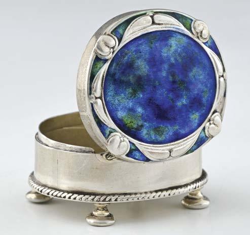 5 Liberty and Co., an Arts and Crafts silver and enamelled stick pin, Birmingham 1906, plain circular form with blue green enamel centre, 1.86g £90 - £100
