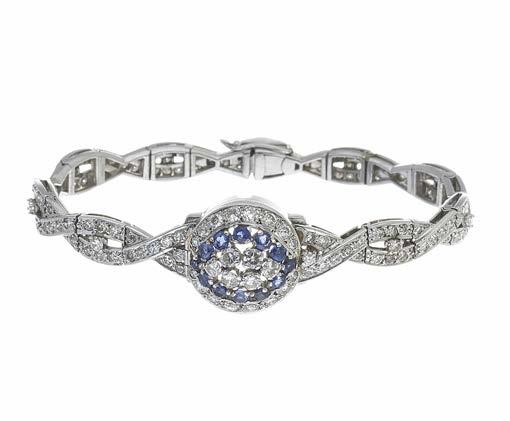 59 An Art Deco 18ct gold vari-cut diamond openwork bracelet, estimated total diamond weight 8.50ct, G-H colour, VS clarity, French assay marks, indistinct maker’s mark, length 19cm, 50.7g