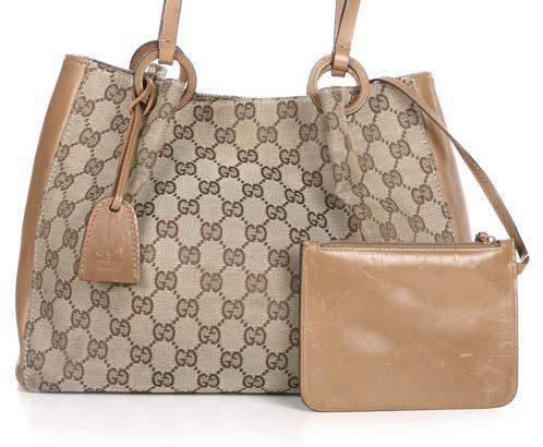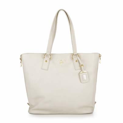351. Prada, a Vitello Side Zip Convertible tote, crafted from cream leather with gold-tone hardware, featuring dual leather top handles with detachable leather ID tag, side zips for expansion, snap button fastening, maker’s beige jacquard logo fabric lining and four protective base studs, measuring 14 by 35 by 36cm £250 - £350