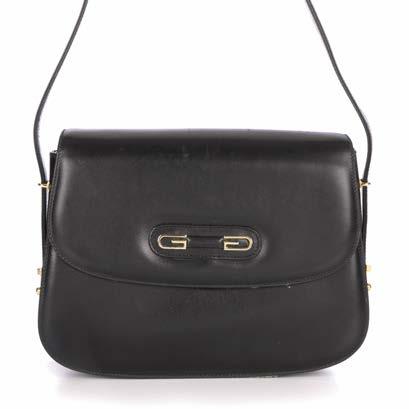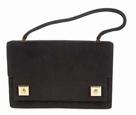 354 Salvatore Ferragamo, a Gancini handbag, designed with a black suede exterior, single leather shoulder strap, polished gunmetal Gancini logo front plaque, magnetic snap button fastening and one interior zip pocket, measuring 7 by 14 by 27cm, with maker’s dust bag £40 - £60