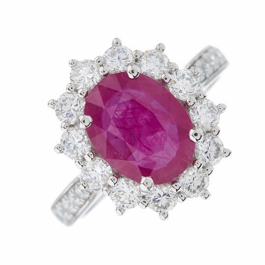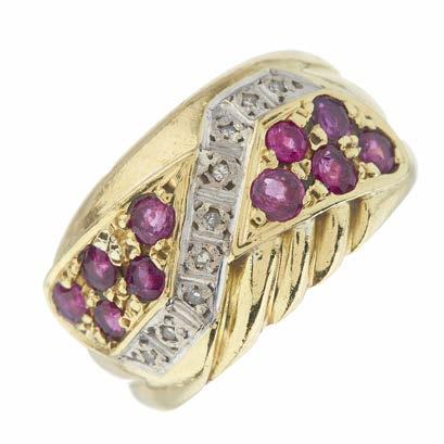 37. A late Victorian silver and gold, ruby and vari-cut diamond floral cluster openwork pendant, estimated total ruby weight 1.50ct, estimated total diamond weight 0.50ct, length 3.5cm, 9g £1,000 - £1,500