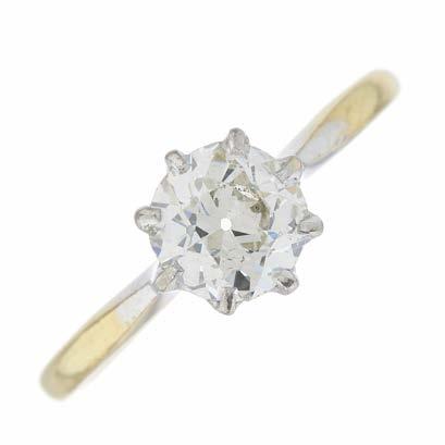 3 An early 20th century 18ct gold and platinum, old-cut diamond single-stone ring, with tapered shoulders, diamond estimated weight 1.05ct, I-J colour, SI clarity, band stamped 18ct & pt, ring size O, 3.1g £800 - £1,200