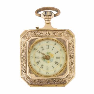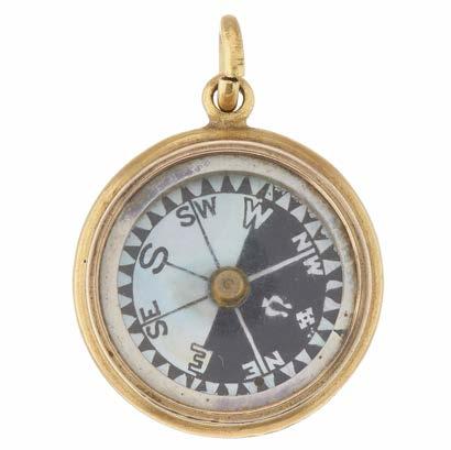 23 An Edwardian 18ct gold glazed fob pendant, with painted mother-of-pearl compass, hallmarks for London 1901, length 3.5cm, total weight 11g £300 - £400