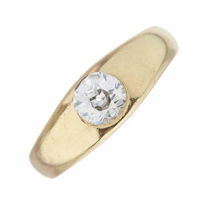 21 An early 20th century 18ct gold old-cut diamond singlestone band ring, diamond estimated weight 0.50ct, I-J colour, P1-P2 clarity, band stamped 18, ring size R, 5.9g £200 - £300