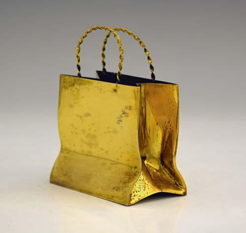 39 A George III silver-gilt novelty vinaigrette, modelled in the form of a satchel or purse, the hinged cover opens to reveal a gilt interior, and pierced grille decorated with foliate scrolls, Samuel Pemberton, Birmingham 1817, length 2.6cm, weight 8g/0.25ozt approx £150 - £250