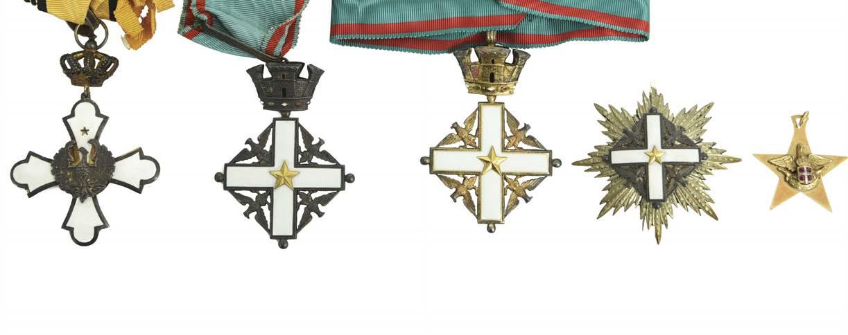 Notes: Fausto Cleva was born in Trieste in 1902. His career as a conductor began in Milan, and in 1920 he emigrated to the United States of America where he joined the Metropolitan Opera in New York. He worked with various august institutions as a conductor and he also played the piano as an accompanist to many of the major opera singers of the period. Cleva died of a heart attack in Athens in 1971 while conducting Gluck’s Orfeo ed Euridice, and was posthumously admitted to the Order of the Phoenix, the insignia being collected by his widow Irene, accompanied by his daughter Maria. The gold star offered here, though later dated, appears to bear some relation to the Fiume Enterprise of 191920, in which the city was occupied by Italian Nationalists opposed to its exclusion from Italy’s borders by the Paris Peace conference of 1919.