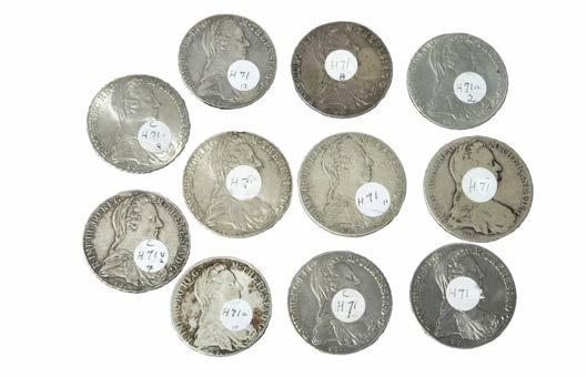 Maria Theresa Thalers: a small collection of reference literature, including: Walter Hafner, ‘Lexicon of the Maria Theresien Thaler 1780’; Cara Semple, ‘A Silver Legend / The Story of the Maria Theresa Thaler’, and other material.