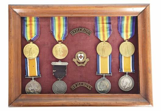 A B.E.M. group of medals and insignia to Edith Violet Moutrie, British Red Cross: Medal of the Order of the British Empire for Meritorious Service (British Empire Medal), Elizabeth II (EDITH VIOLET MRS MOUTRIE) with its bow ribbon and pin fitting, in case of issue, appears officially re-named, nearly extremely fine and toned; British Red Cross Society Medal for War Service, wear to gilding, otherwise very fine; Defence Medal, contact marks to truncation, otherwise very fine; Voluntary Medical Service Medal, silver, with seven B.R.C.S. bars (EDITH V. MOUTRIE.), [4]; together with a B.R.C.S. Proficiency Badge with 1915 bar (760 EDITH HAYWARD), various other B.R.C.S. badges; badges for the Women’s Institute, the Primrose League, the National Hospital Service Reserve, the Women’s Voluntary Service, and other organisations, a White Star Line badge, others; and a quantity of certificates, photographs and other ephemera. [qty]