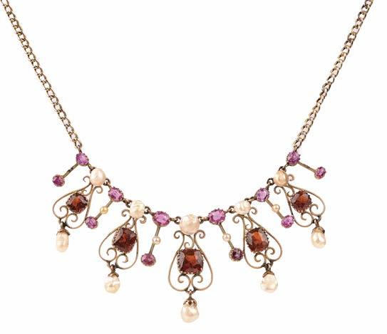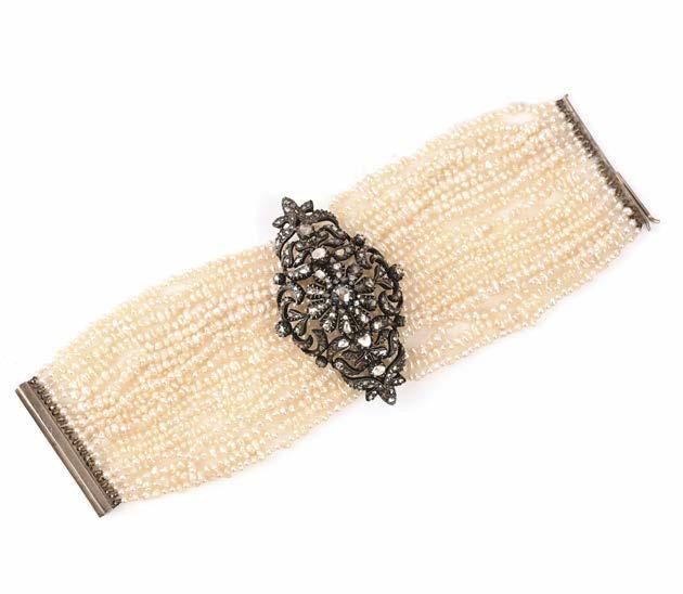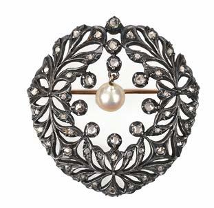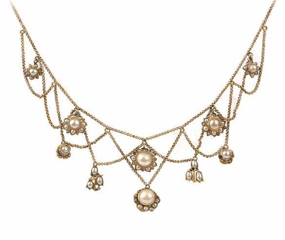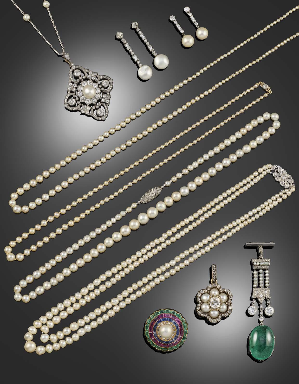 Pearls known and guaranteed to be cultured or natural are described as such in the cataloguing. Where the origin of a pearl is unknown and not guaranteed, it is described simply as a ‘pearl’, and it will be specified in the cataloguing as untested. Pearls described in this way are guaranteed to be pearls and not simulants, but their origin is not guaranteed as either natural or cultured. Items described as ‘seed pearls’ have also not been tested and cannot be guaranteed as natural pearls.