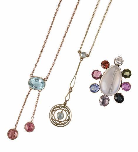 TWO GEMSET GOLD PENDANTS AND A BROOCH, EARLY 20TH CENTURY