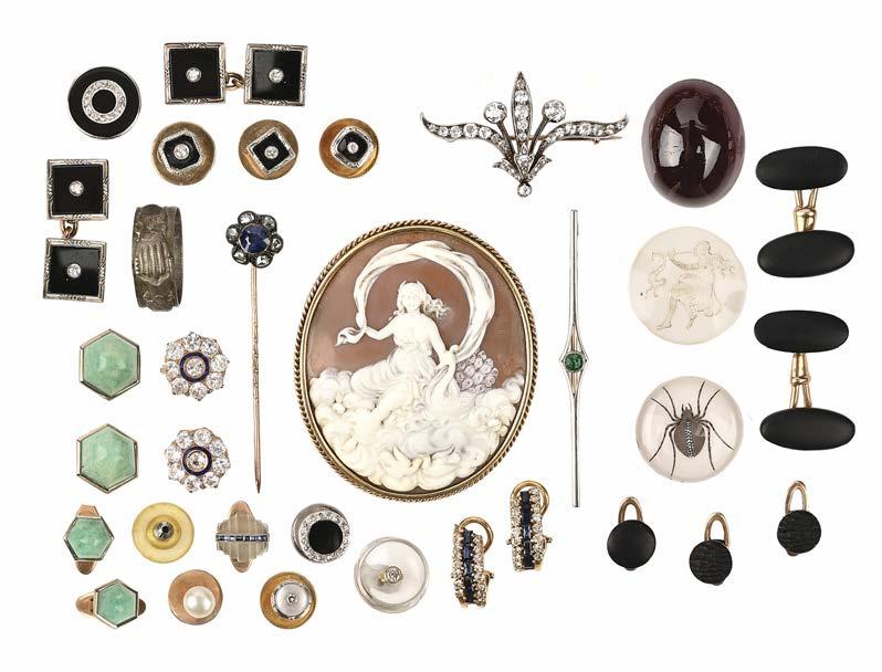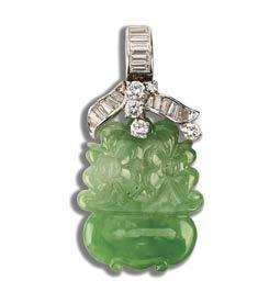 Not all images are lifesized, and weights and measurements in the catalogue are approximate only. It is common practice for coloured stones including jade to be treated to enhance their appearance. This includes jade that has been bleached (usually in acid), polymer/resin filled or dyed, or a combination of any of these treatments. Prospective buyers should presume that all coloured stones sold by Woolley and Wallis have been treated unless stated to the contrary in the catalogue description. Please contact the department for more information regarding enhancement and treatment of coloured stones, and for condition reports which are available on single item lots.