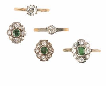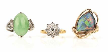 GEMSET RINGS, including an Art Deco jade and diamond ring
