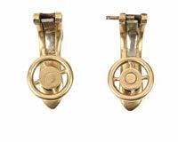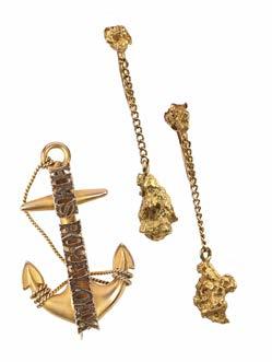 A PAIR OF GOLD NUGGET EARRINGS AND A GOLD HMS ROYAL OAK ANCHOR BROOCH, both stamped 9ct, gross weight 9g