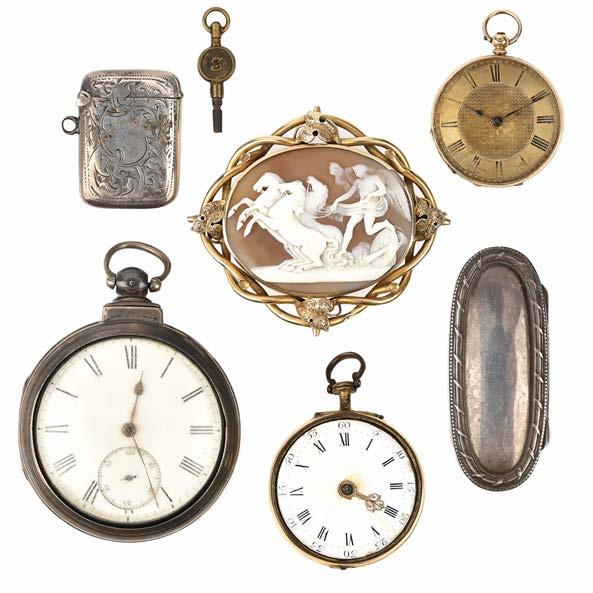 A COLLECTION OF POCKET WATCHES AND SILVER BOXES, including a lady’s gold keywind openfaced fob watch
