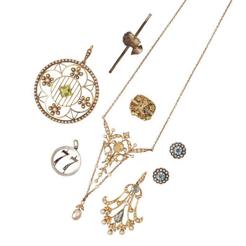 SELECTION OF ANTIQUE JEWELLERY, including three Edwardian seed pearl pendants £1,2501,450