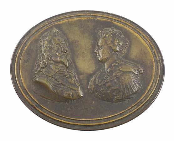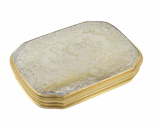 1040 An early-18th century silver snuff box, unmarked, circa 1730, oval form, the hinged cover engraved with an armorial, gilded interior, scratched initials to the side ‘IS’, length 8.1cm, approx. weight 1.7oz. £200-300