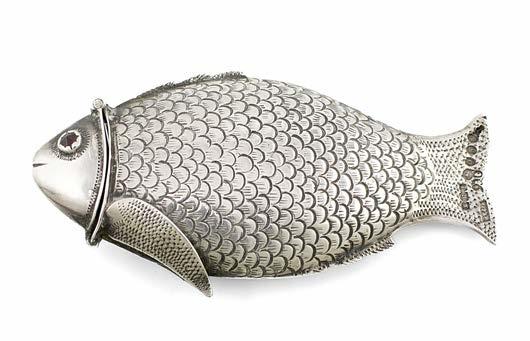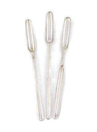 £250-300 £200-300 £200-3001020 A pair of novelty silver frog sugar tongs, unmarked, the arms modelled as the frog’s legs, spring-action a.f, length 9.5cm, approx. weight 1.3oz. £100-150