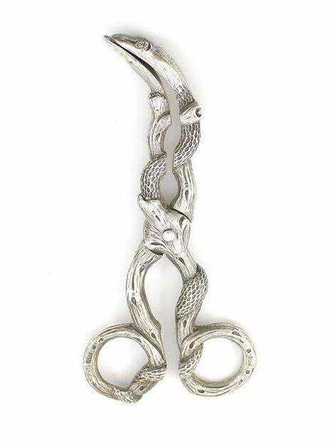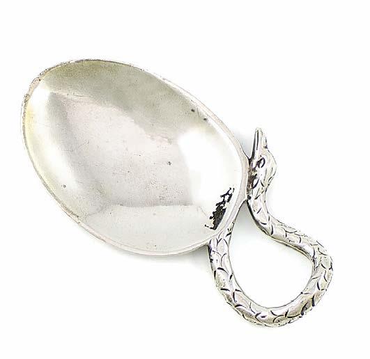by Yapp and Woodward, Birmingham 1847, modelled as a snake wrapped around branches, the bowls modelled as the snake’s head, ring handles, with a crest, length 13cm, approx. weight 3.5oz. £150-200