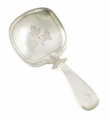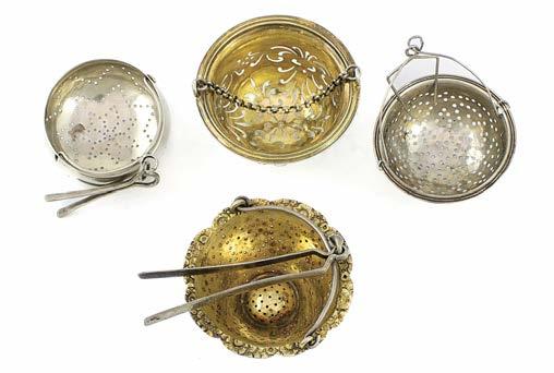 1024 A collection of four pairs of early-18th century silver sugar tongs, comprising: an andiron pair, possibly by Charles Overing, London circa 1710, another unmarked pair with scratch initials ‘M.B’, plus a pair with a worn maker’s mark and another pair with square bowls, approx. weight 2.4oz. (4) £200-300