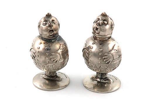 36 A mixed lot of silver items, various dates and makers, comprising: an Art Nouveau three-handled pepper pot, by Walker and Hall, Sheffield 1907, three further pepper pots, three salt cellars, a mustard pot, a pair of liqueur goblets, another goblet, a pierced basket, a jam pot cover with a later glass body, an egg cup, two small bowls, a vase from an epergne, and a condiment jar, approx. weighable 25oz. (qty) £300-400