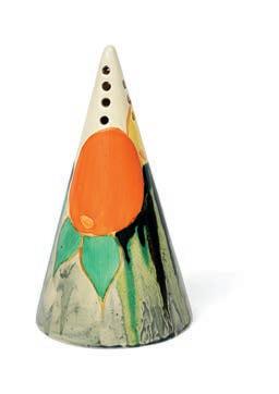 ‘Delecia Citrus’ a Clarice Cliff Bizarre Conical sugar sifter, painted in colours printed factory marks, 14cm. high Provenance