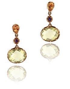 18 A group of gem set jewels, comprising: a larimar and millefiori glass pendant on a gold ropetwist chain, chain length 25cm, chain signed Chopard, stamped 750, pendant unsigned, length 4.4cm; an amethyst, citrine and violet cubic zirconia pendant necklace; a pair of gold pendent earrings set with circular cut synthetic rubies and briolette pink tourmalines, post fittings; a pair of hoop earrings set with roughand brilliant cut diamonds, post fittings; a pair of gold and diamond stud earrings, post fittings; a pendant necklace of similar design;a cabochon sapphire and rose cut diamond cluster ring, L½, one diamond deficient; a pear shaped rose cut ruby and diamond cluster ring, size M; a pendant composed of three interlocking rings in tricoloured gold, each set with brilliant cut diamonds; a pear shaped cabochon turquoise and brilliant cut diamond ring, size L½; a pendant necklace composed of oval links set with brilliant cut diamonds, circular cut garnets, peridot, citrine and a cabochon turquoise, to a fine link chain; and a Swarovski crystal bracelet £800 1,200