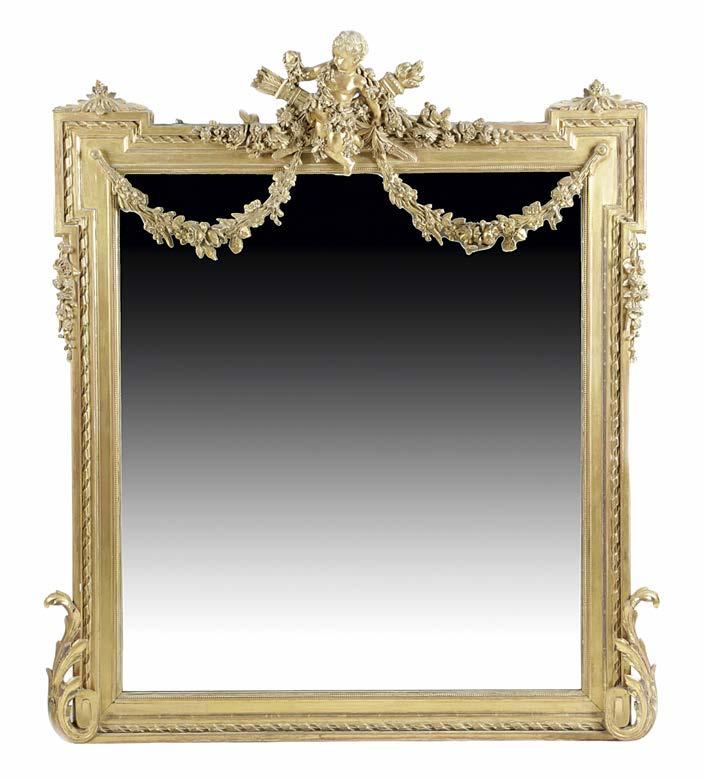 A FRENCH GILTWOOD AND GESSO OVERMANTEL MIRROR IN LOUIS XVI STYLE, LATE 19TH CENTURY