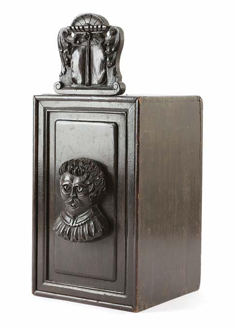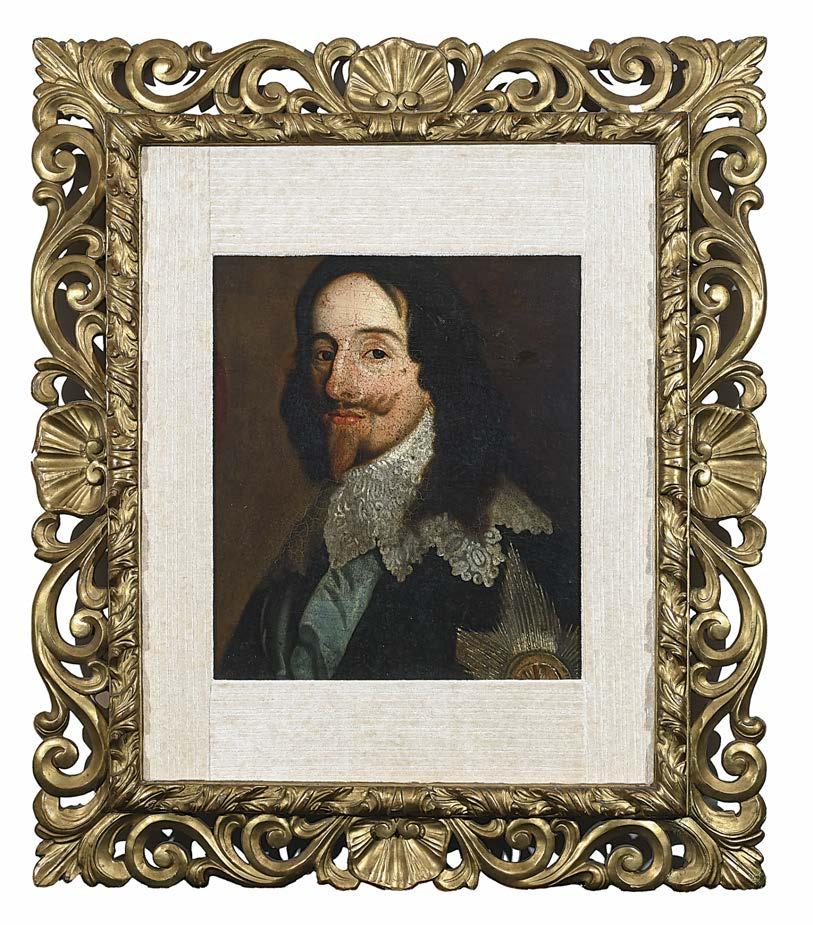 depicted wearing a lace ruff and sporting the Order of the Garter on a turned socle, together with a scagliola faux marble column (2)