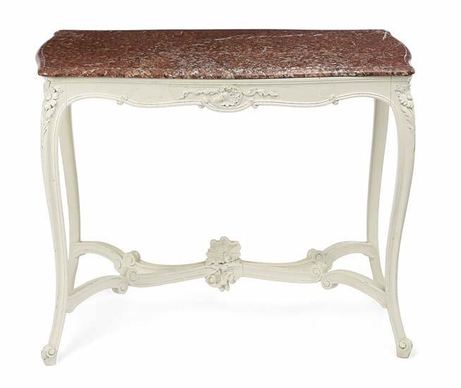 A PAINTED PINE AND GILTWOOD SERPENTINE CONSOLE TABLE IN LOUIS XV STYLE, LATE 19TH / EARLY 20TH CENTURY