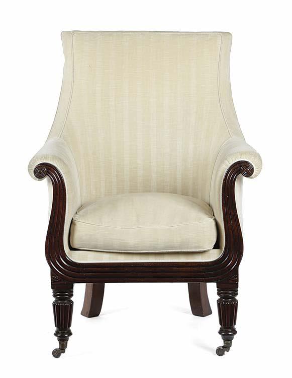 A MAHOGANY WING ARMCHAIR IN GEORGE II STYLE, 19TH CENTURY