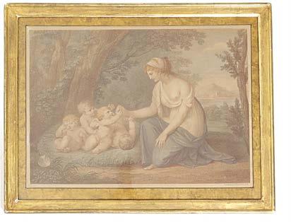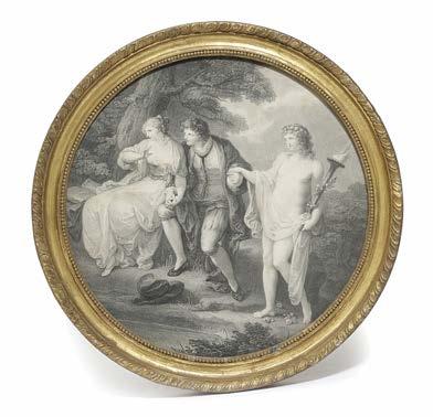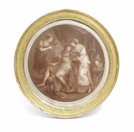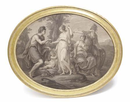 AFTER ANGELICA KAUFFMAN, C.1800 of Her Grace the Duchess of Devonshire and Vicountess Duncannon and Lady Rushout & Daughter and another, after Bartolozzi, of Lady Ann Bothwell’s lament, in glazed giltwood frames (3)