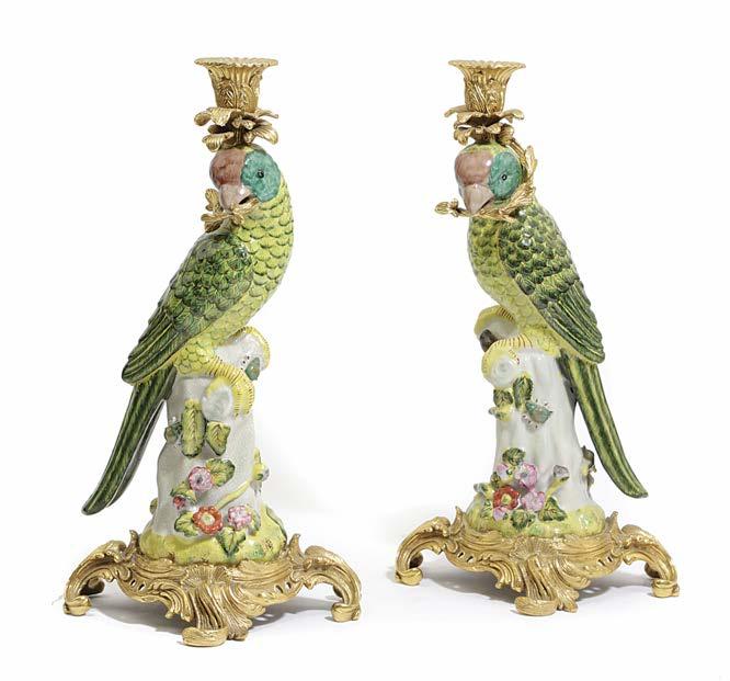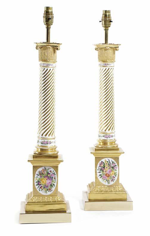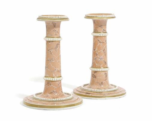 A PAIR OF GEORGE III GILT BRONZE AND PORCELAIN CANDLESTICKS