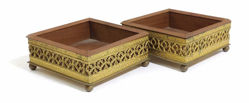 the rectangular platform above Vitruvian style scrolls and stiff leaves (2) 40.4cm high, 20.4cm wide, 22cm deep