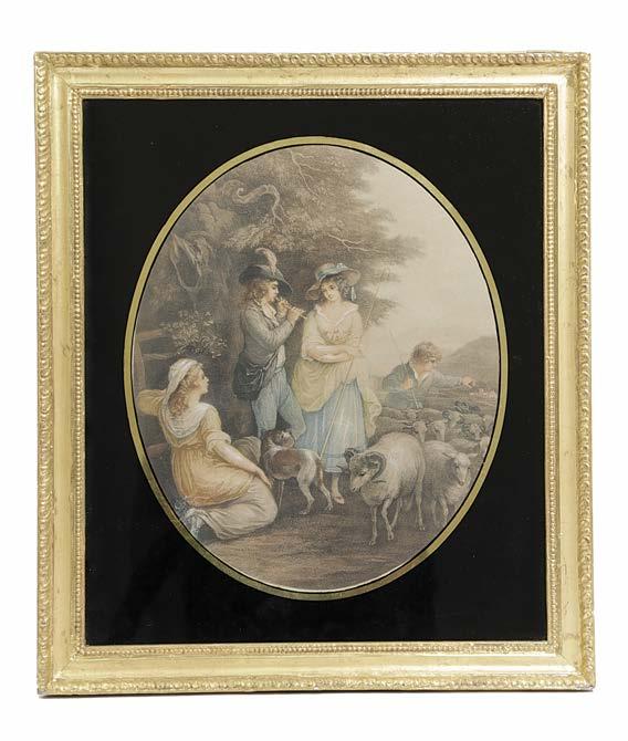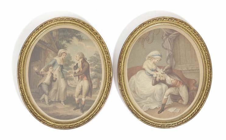 A PAIR OF GEORGE III OVAL COLOURED STIPPLE ENGRAVINGS