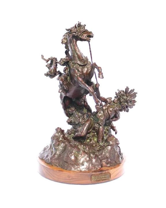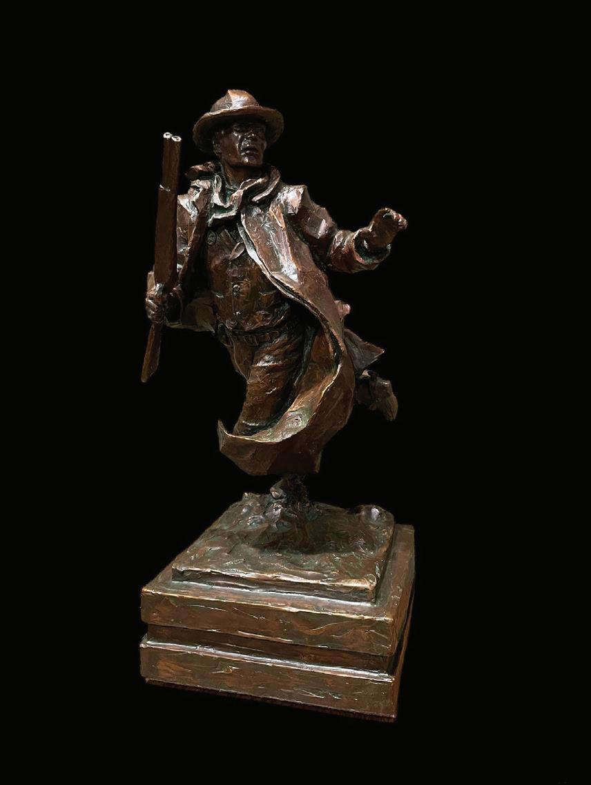 Scott Rogers is celebrated for his evocative ‘Old West’ and ‘Americana’ themed sculptures, which capture the spirit, courage, and history of a bygone era. His work is a tribute to the men and women who shaped history, often depicting moments of bravery and resilience. With a deep understanding of anatomy, history, and emotion, Scott’s sculptures are more than art—they are a bridge to the past, rich with stories and meaning. Through his unique artistic voice, Scott uses shape, shadow, and silhouette to create pieces that inspire and uplift. As he says, “I sculpt with the intention of my work lifting the spirit, assisting one to reach out for the good in life, and inspiring one to feel better about themselves and their fellowmen.” His passion for the Old West, cultivated from a young age, shines through in every piece, offering viewers a chance to connect with the beauty, ferocity, and honor of the era.