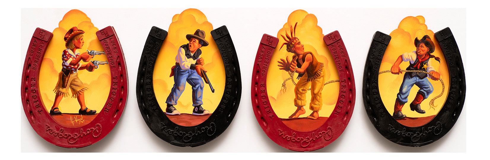 Jim Vogel’s It’s Not All Fun and Games blends childhood nostalgia with cultural insight. Rooted in New Mexico regionalism, his expressive figures capture the grit, humor, and heart of Southwestern life. Revisiting youthful games through an adult lens, Vogel reveals how innocent play reflected deeper societal narratives. Playful yet poignant, this series offers a vivid window into the imagination and resilience of the American Southwest.