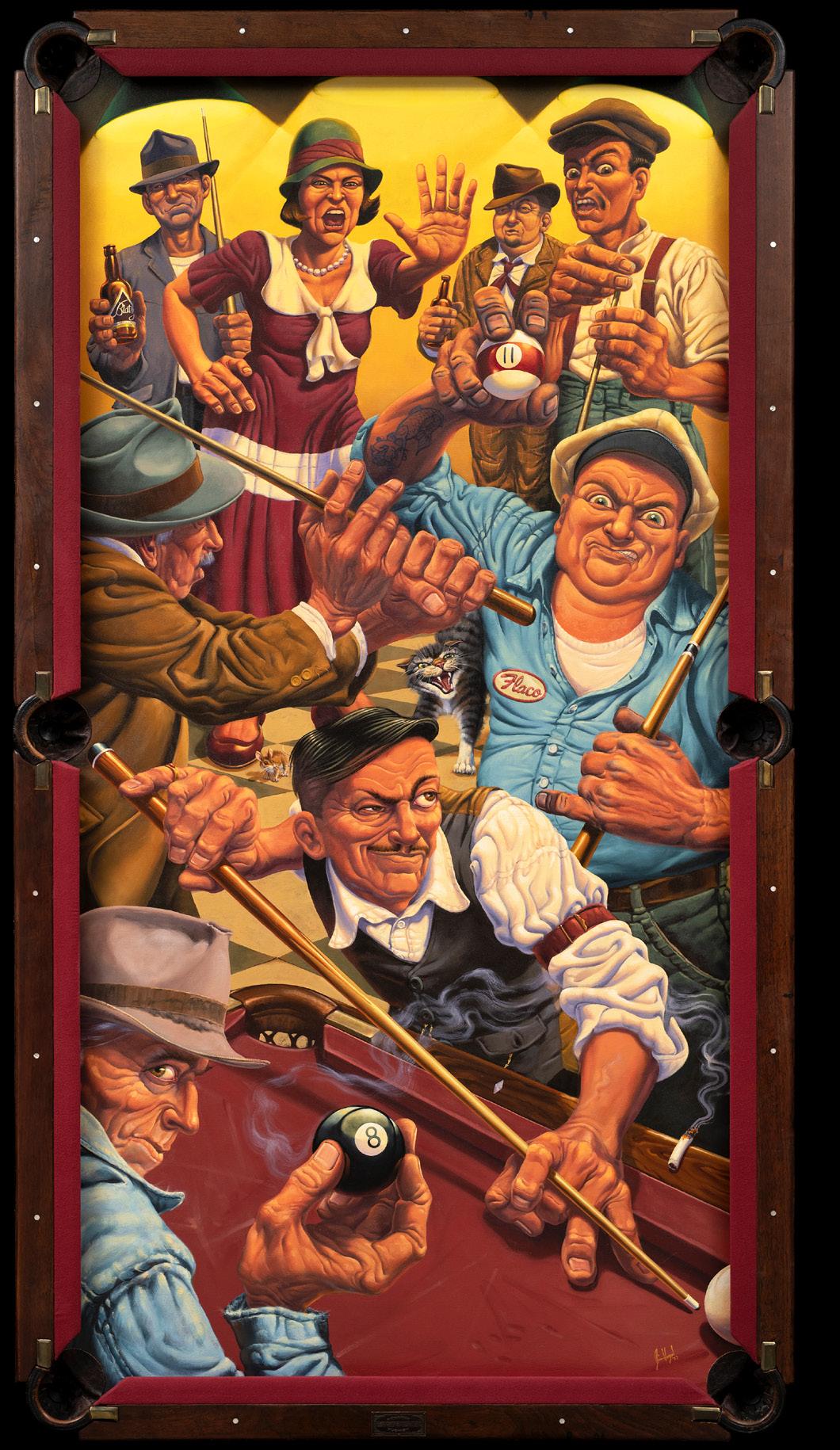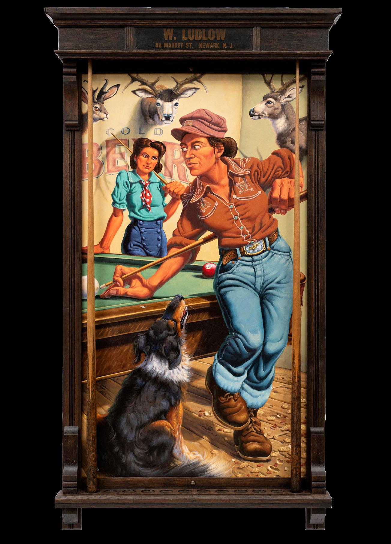 Oil on canvas panel with antique pool cue rack Frame in collaboration with Christen Vogel