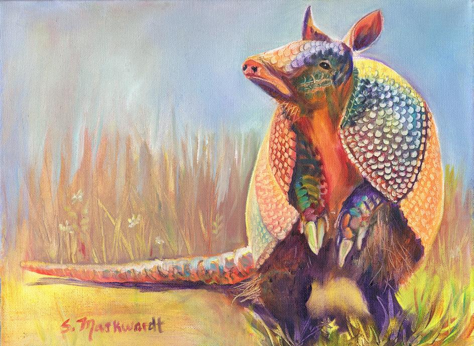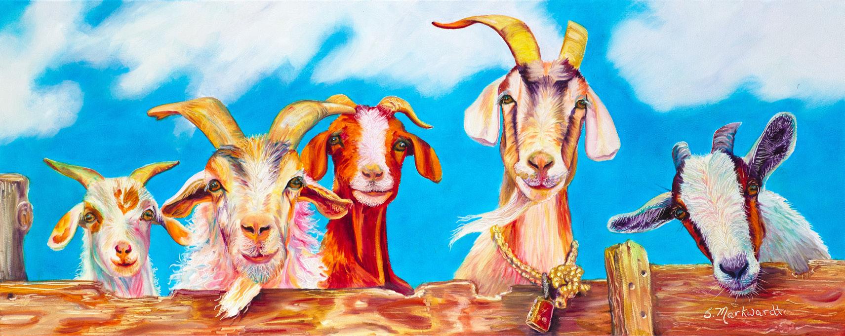 Animals of the West have become Sharon Markwardt’s favorite subjects. It’s no wonder; with horses, dogs, and a donkey on her property, and surrounded by the neighbor’s longhorns, goats, and chickens, interaction with the animals is a part of the daily rhythm. She keeps a camera handy as she travels as well, to catch shots of other subjects. “I feel a connection to these creatures, and I love it when I can express their personalities and emotion, their soulfulness. So much comes through in the eyes. Painting them gives me great joy, and I think it shows. When collectors tell me my work makes them smile every day … what could be better?”