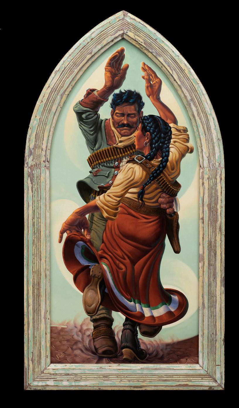 Pancho Villa and one of the brave soldaderas enjoy a fandango after his 1916 raid on Columbus, New Mexico. Villa is the only foreign general to successfully attack the contiguous United States and get away with it. That’s something worth celebrating even if his victory was short lived. US Army General Pershing illegally pursued Villa into Mexico but never caught him. Pancho Villa was offered a ranchero if he promised to exit Mexican Politics. He accepted as much for his soldiers who were also given a safe home on the ranchero and an opportunity to build the lives they fought for as for himself. The peace was short lived as Villa was assassinated in 1923. It is believed the Mexican president at the time had him killed, fearing Villa was planning to enter the political arena again.