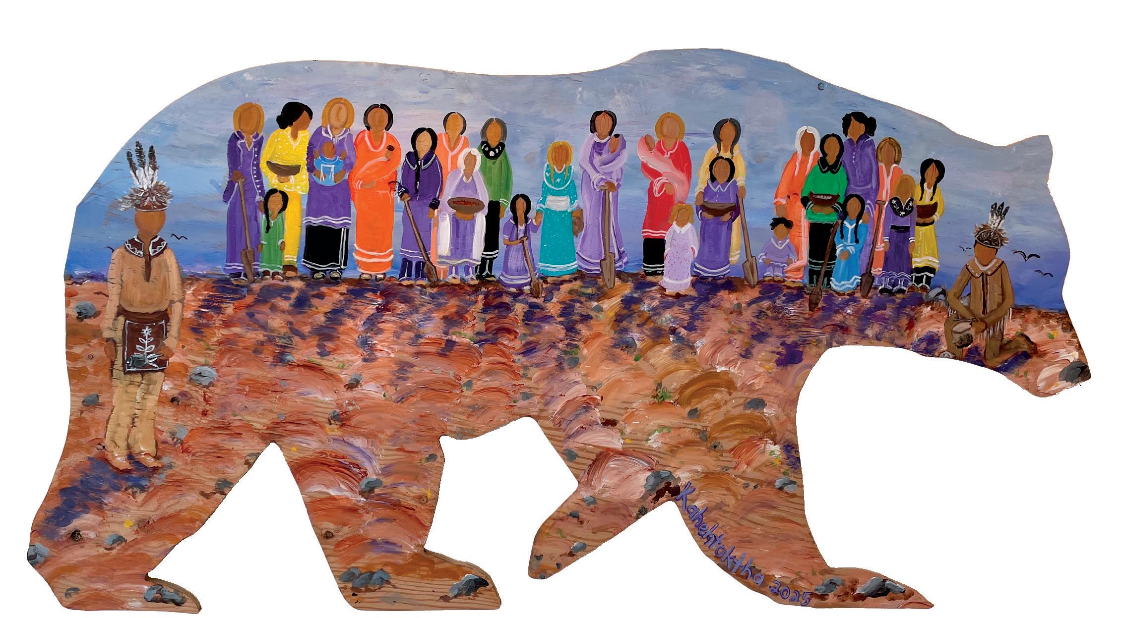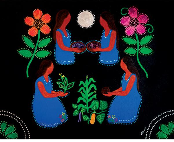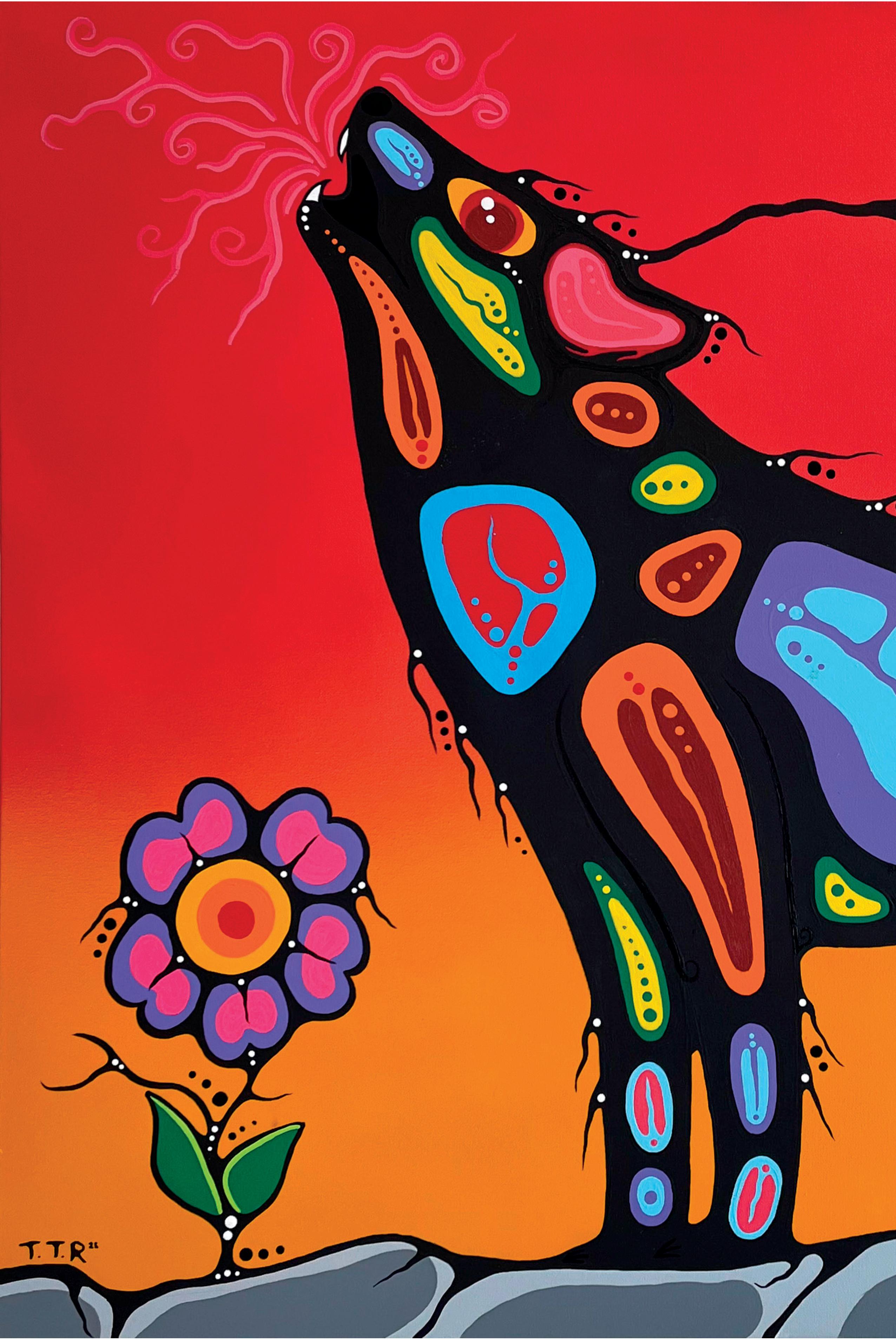 Jessica Youmans is an Ojibwe artist whose work explores cultural identity, healing, and womanhood. Through bold lines and symbolic imagery, she honours ancestry and resilience.