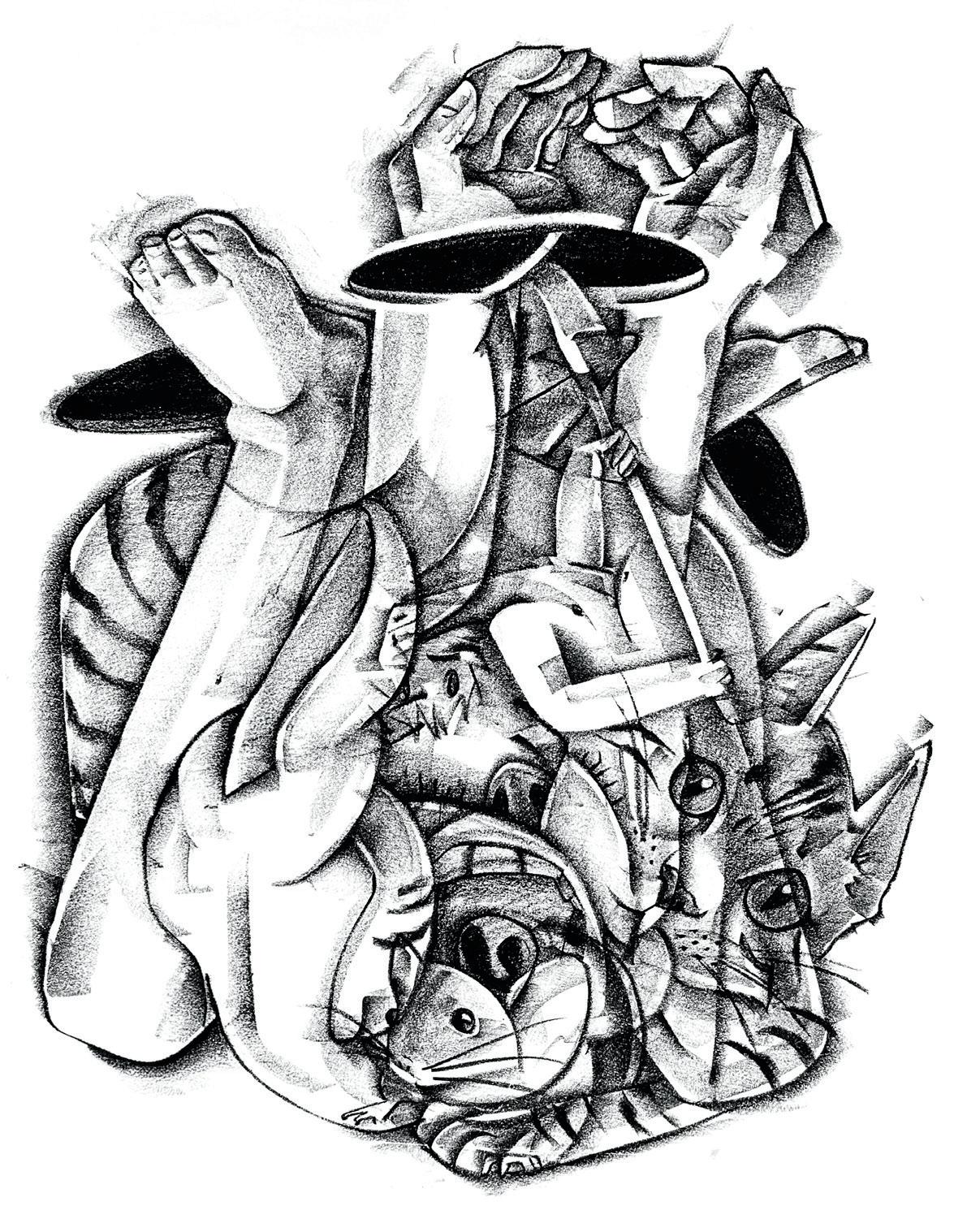 Amalgamating the durational performances of Hsieh Teh Ching, the stream-of-consciousness figuration of Kim Jung-Gi, and Pablo Picasso’s synthesis of visual form, 老茶 Chase Cha explores contemporary questions of being and potential.