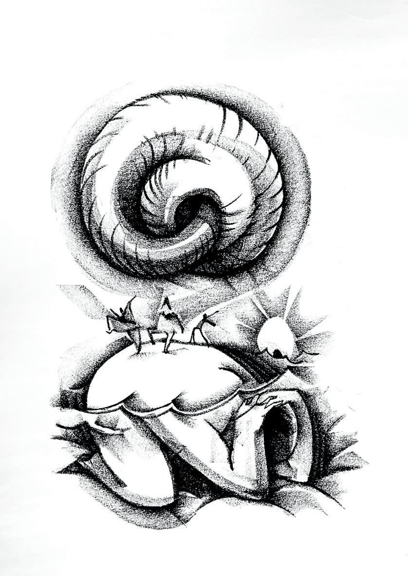 The drawings that make up Meet You at the Root were created during Cha’s final months in Belleville before another major life shift. Rendered in black oil pastel on white paper, the works were sketched amid the emotional tension of preparing to leave once again—this time relocating to Hangzhou, China, where his wife accepted a teaching position.